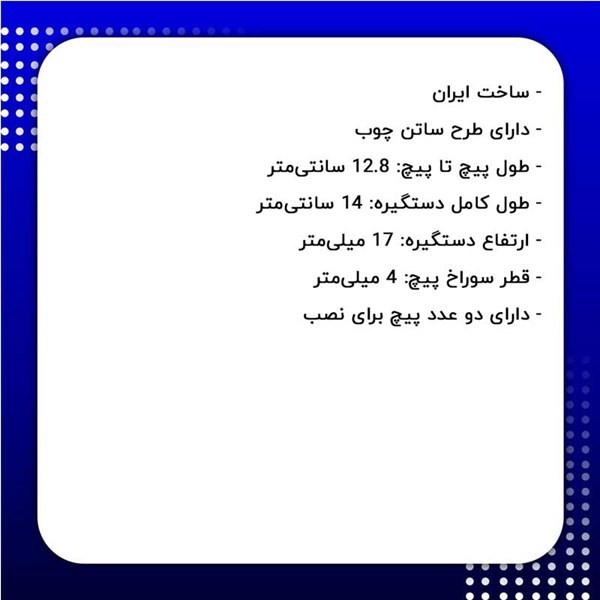 خیلی خوبه که پیچ هم سایز خودش همراهش هست. من قبلا یه خرید دیگه از یه سایتی داشتم و پیچ همراهش نبود وکلی گشتم تا پیچ مناسب براش پیدا کنم. خیلی دردسر داشت برای همین دیگه از اونجا خرید نکردم اما از این سایت راضی ام